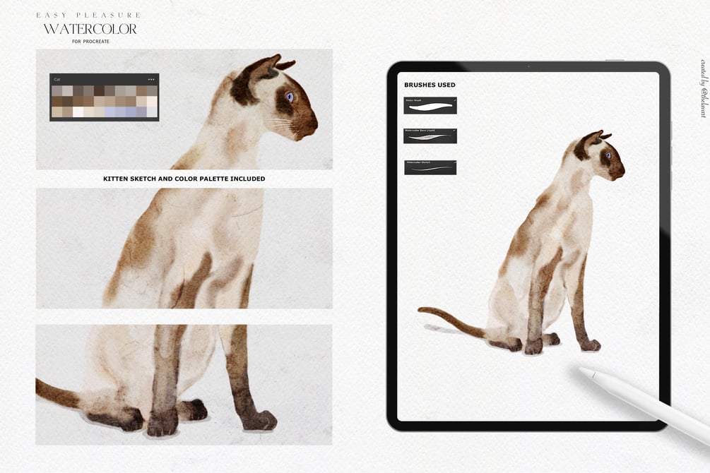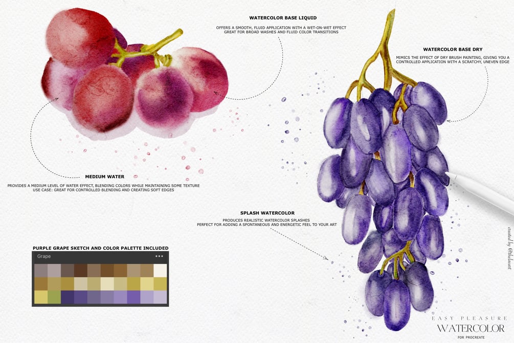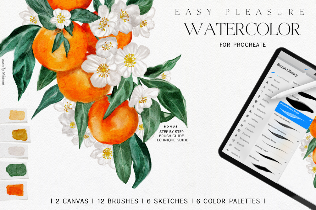 Easy Pleasure Watercolor Studio for Procreate are suitable for drawing a wide range of subjects, its gonna work great for botanical illustrations, food art, for drawing animals and portraits, great fit for landscape and interiors illustration, fashion and travel sketches, and even more!