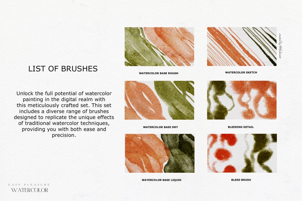 These brushes are designed to replicate the look and feel of traditional watercolor painting, providing you with authentic results.Whether you're a beginner or an experienced artist, these brushes will help you bring your creative vision to life with ease and pleasure.