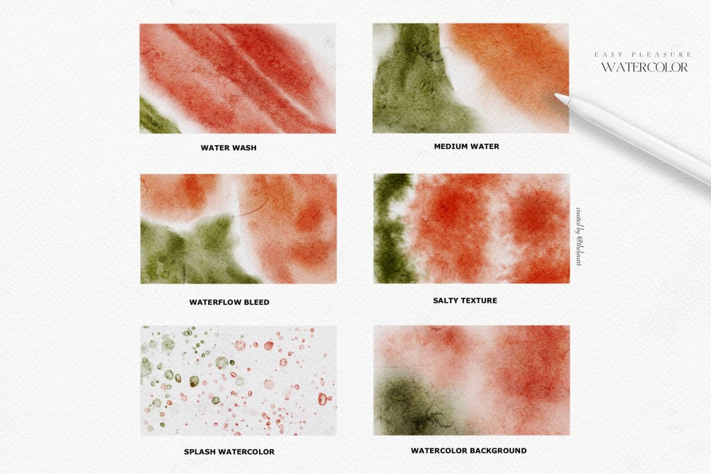Discover the user-friendly Easy Pleasure Watercolor Studio for Procreate. Achieve the ultimate realism with 12 meticulously crafted watercolor brushes, 6 color palettes, and 2 pre-designed watercolor paper canvases. All brushes are carefully made with high-quality, professional-grade paints and papers, offering intuitive, pressure-sensitive controls that are easy to use.