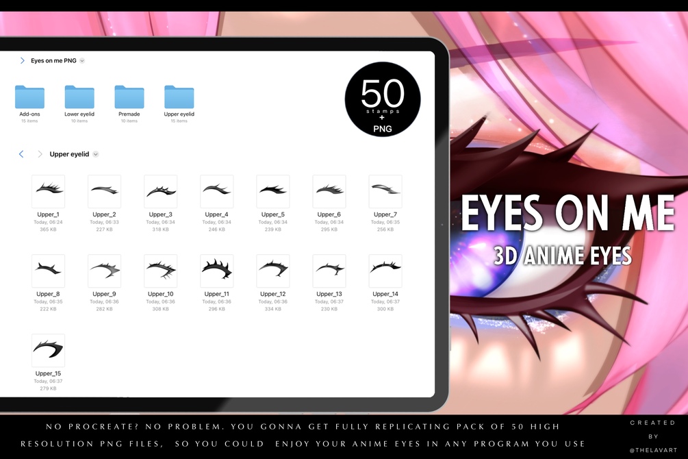 • 50 High-Resolution PNG Files for use in programs like Photoshop, Clip Studio Paint, Krita, and others (in case if you dont use Procreate)